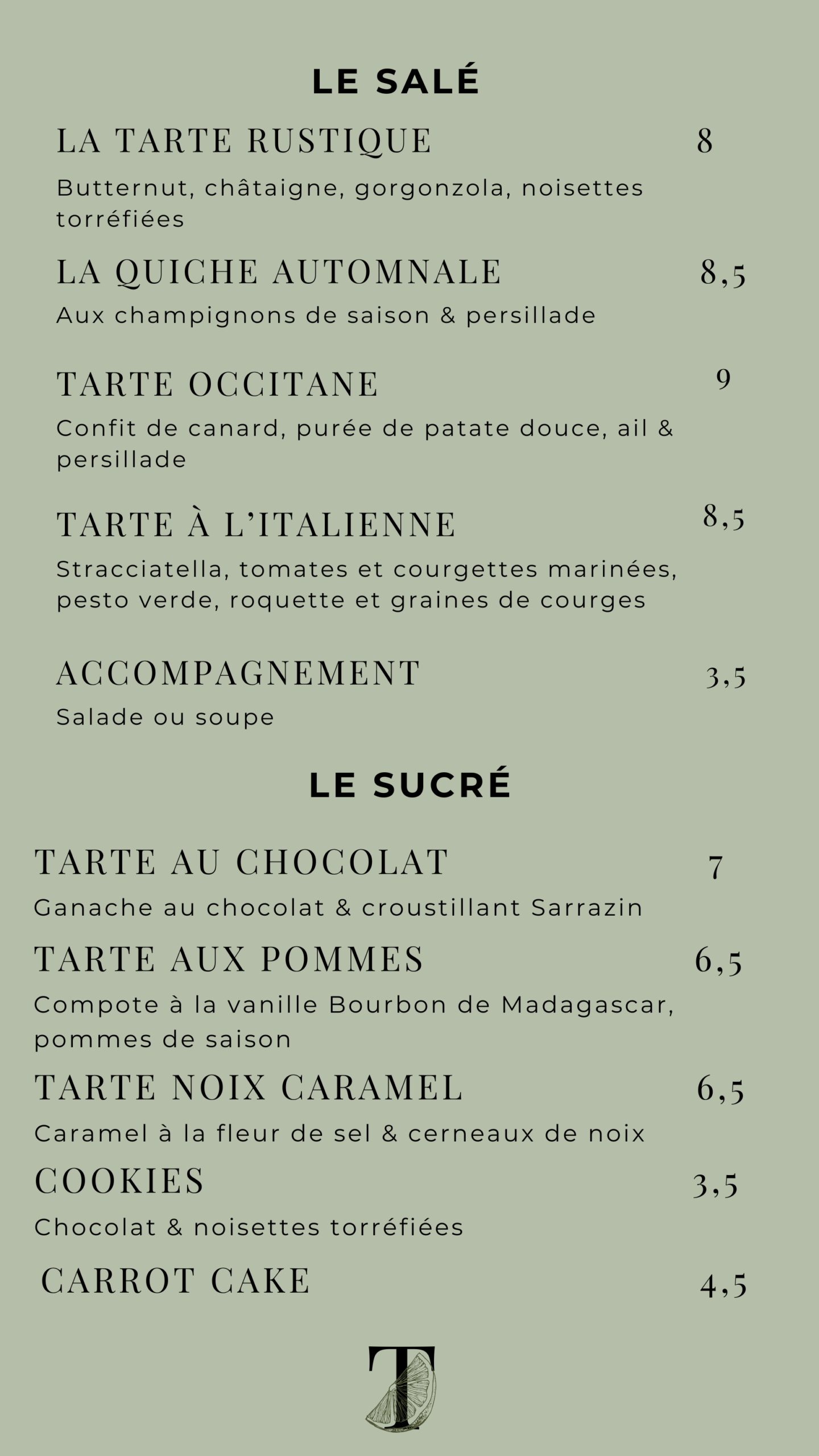Bienvenue à La Tarterie, votre nouveau salon de thé au cœur de Toulouse, spécialisé dans les tartes salées et sucrées faites maison. Nous vous invitons à découvrir un lieu chaleureux tout près de la place du Salin où l’on vient pour savourer des pauses gourmandes, des brunchs réconfortants et des douceurs réalisées avec des produits locaux et de saison.